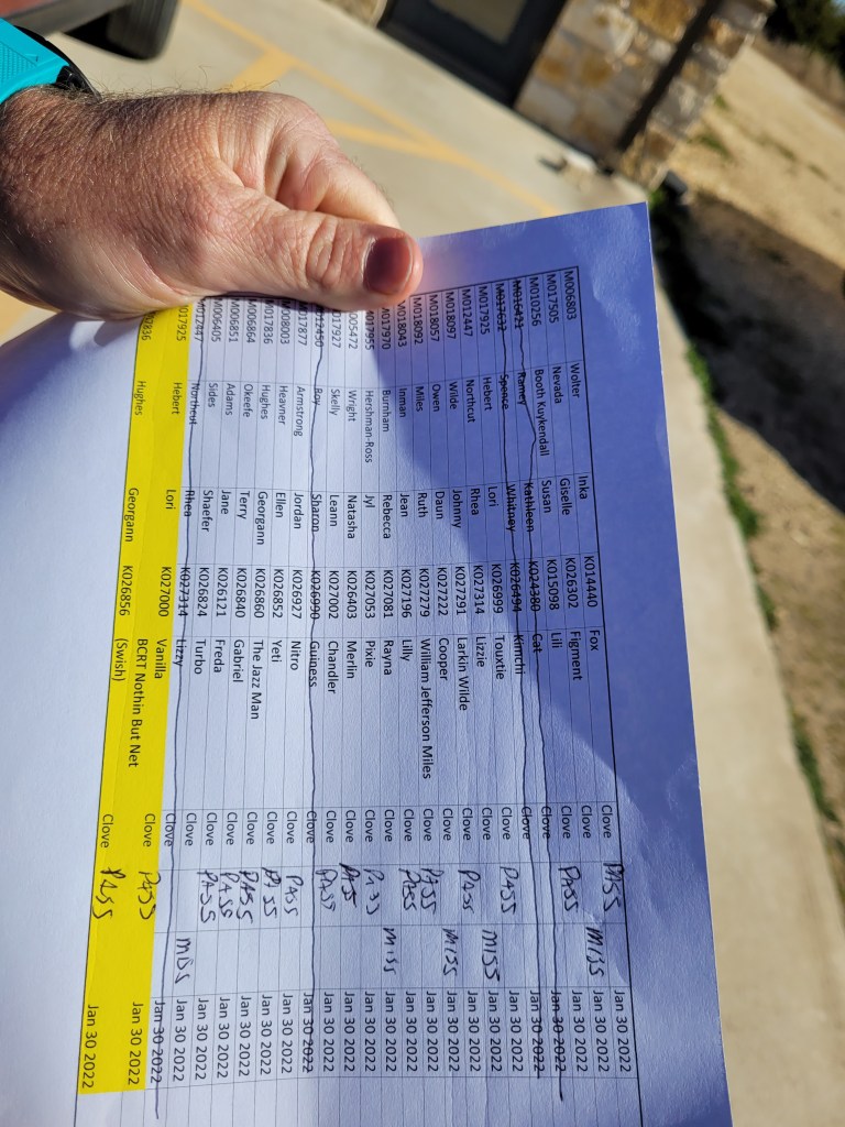 We will still have to enter another ORT, as the NACSW rules state that we must have passed all three odors in order to enter a trial. But, for the moment, I am very happy. In the words of the immortal Meatloaf “Cause two out of three ain’t bad.”