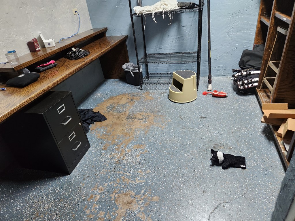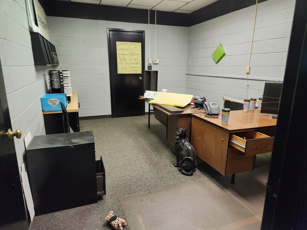 The second room was a tiny bit bigger, and there was more furniture, with more drawers. But still, not a lot of square footage, and it wasn’t an irregular space, which makes it a bit easier—no alcoves where odor can get trapped. You can see that some of the desk and filing cabinet drawers were open, and that was good too—even if odor was hidden in one of the closed drawers, the open ones would make a hide more accessible to the dog.