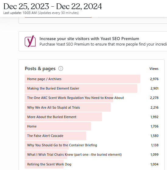What will 2025 bring? More posts of course! Among other things. Yeti and I are scheduled to work on our Detective title (which I am sure will be a wild ride) and I just bought myself a new smoke machine to teach myself more about how odor moves.